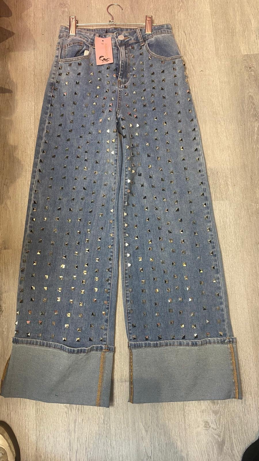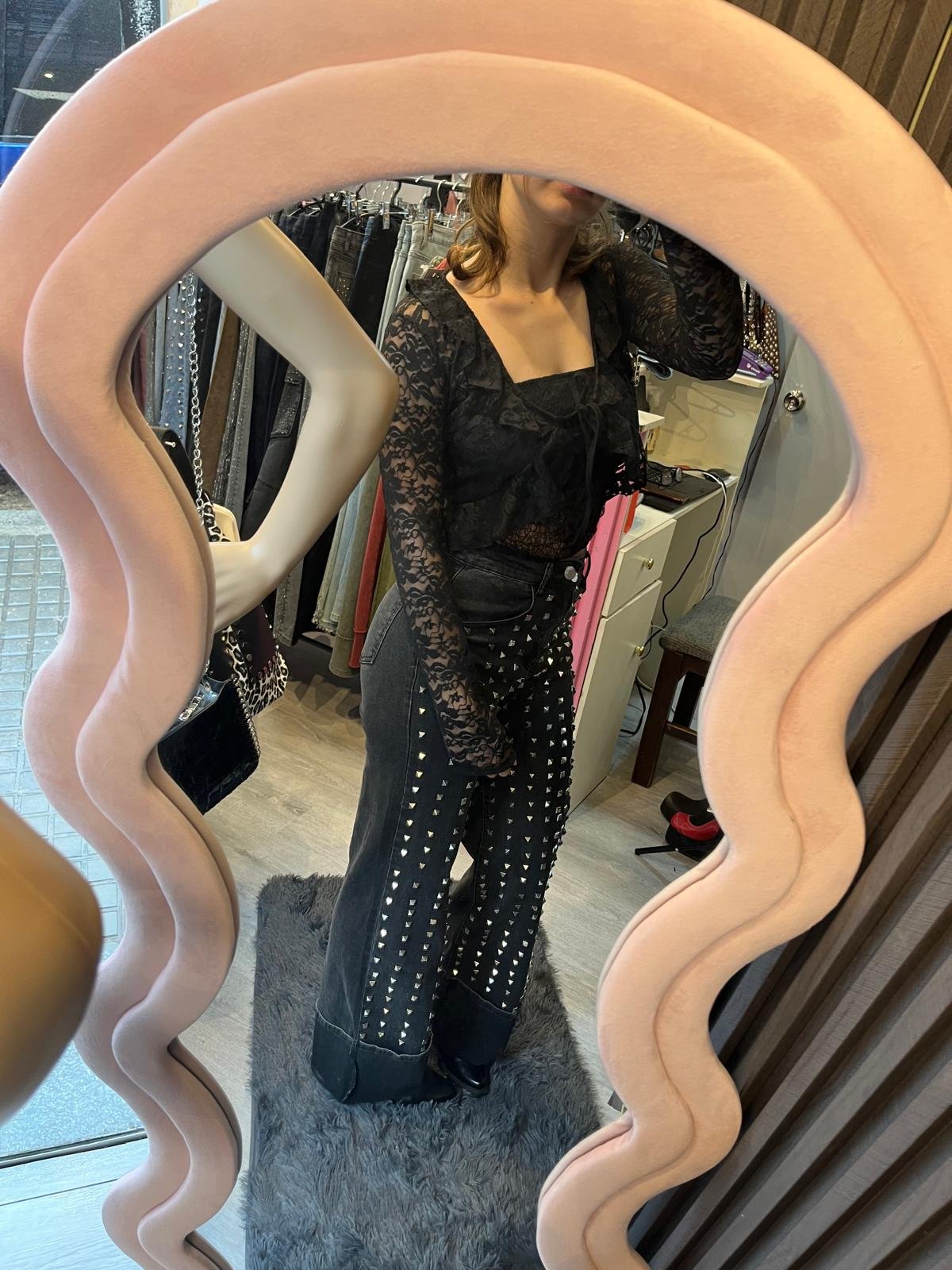 PANTALON CON TACHAS ELATIZADO Y DOBLE EN EL REBAJO