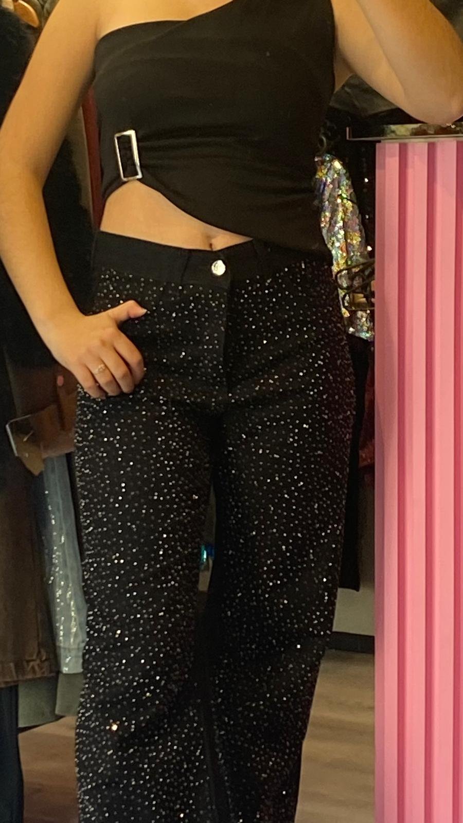 PANTALON NEGRO CON BRIILO