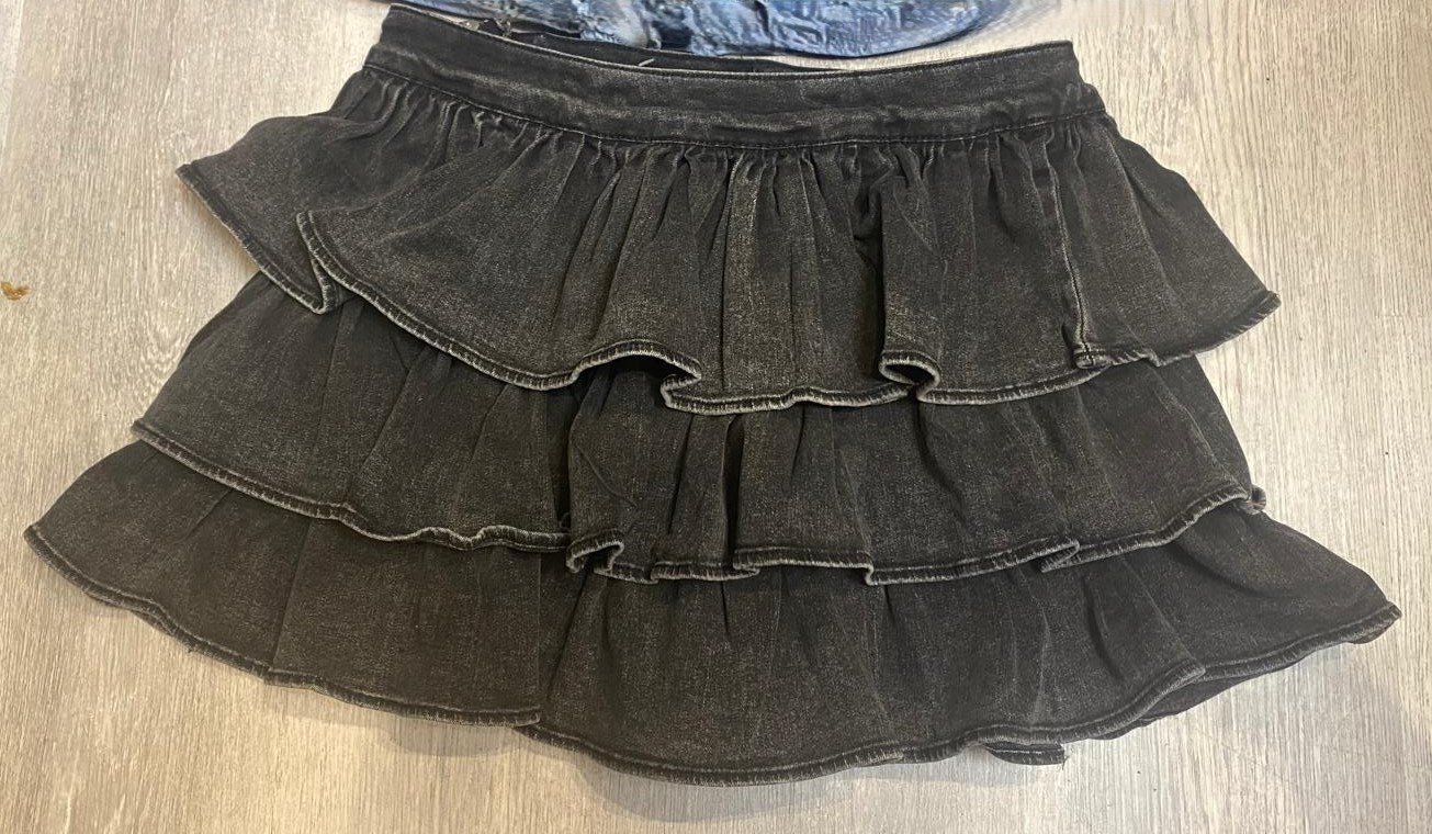 POLLERA CON VOLADO CON JEANS CategoríasCHAQUETAS/TAPADOS/CAMPERAS primavera verano ZAPATOS CANGUROS/BUZOS/CAMPERA/ CARTERAS/CINTOS TOP/REMERAS/BODYS POLLERAS/SHORES/VESTIDOS PANTALONES/JEANS POLLERA CON VOLADO CON JEANS$1.800 POLLERA ELATIZADA /TIRO ALTO MEDIDAS TALLE S CINTURA: 72 CMS CADERA: 96 CMS LARGO: 35 CMS Color Elige una opciónAZUL JEANSNEGRO TALLES Elige una opciónSMLLimpiar POLLERA CON VOLADO CON JEANS cantidad Comprar ahora SKU: N/D Categoría: POLLERAS/SHORES/VESTIDOS Información adicional Información adicional Color AZUL JEANS, NEGRO TALLES S, M, L Productos relacionados POLLERA TIRO BAJO $1.300 Seleccionar opciones ¡Oferta! vestidos remeron $1.500 El precio original era: $1.500.$1.275El precio actual es: $1.275. Seleccionar opciones POLLERA DE JEANS CON DETALLES DE VOLADOS $1.700 Seleccionar opciones POLLERA DE JEANS CON BRILLOS $1.900 Seleccionar opciones