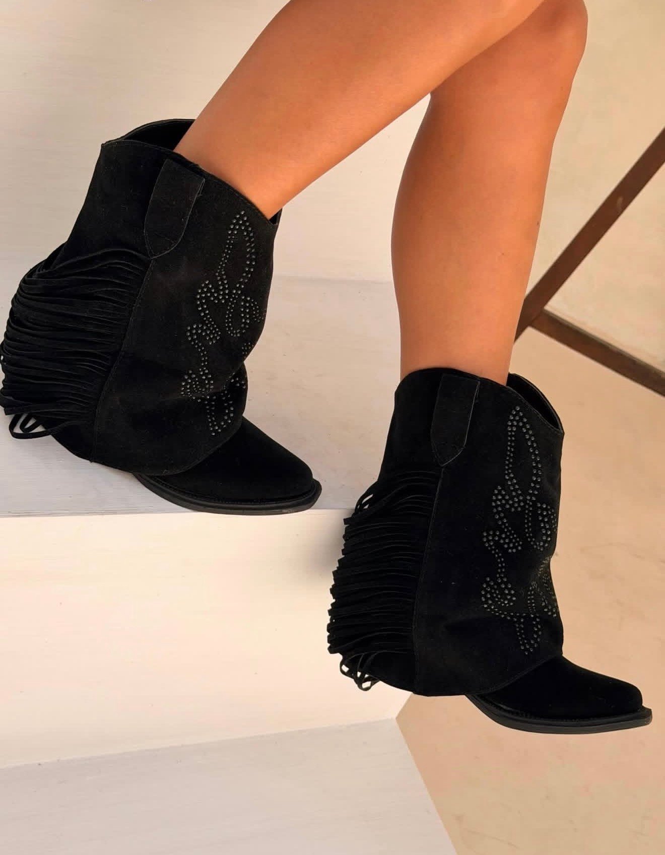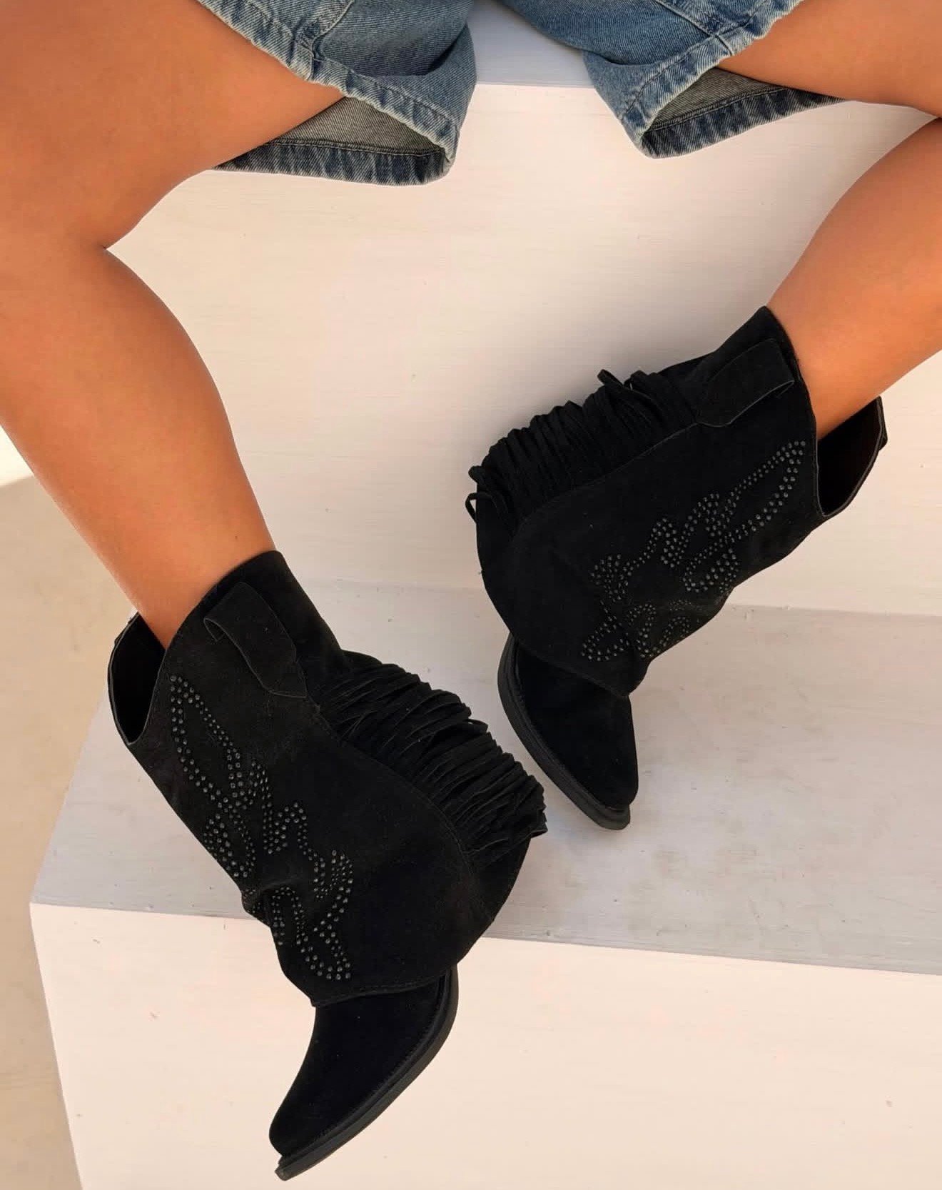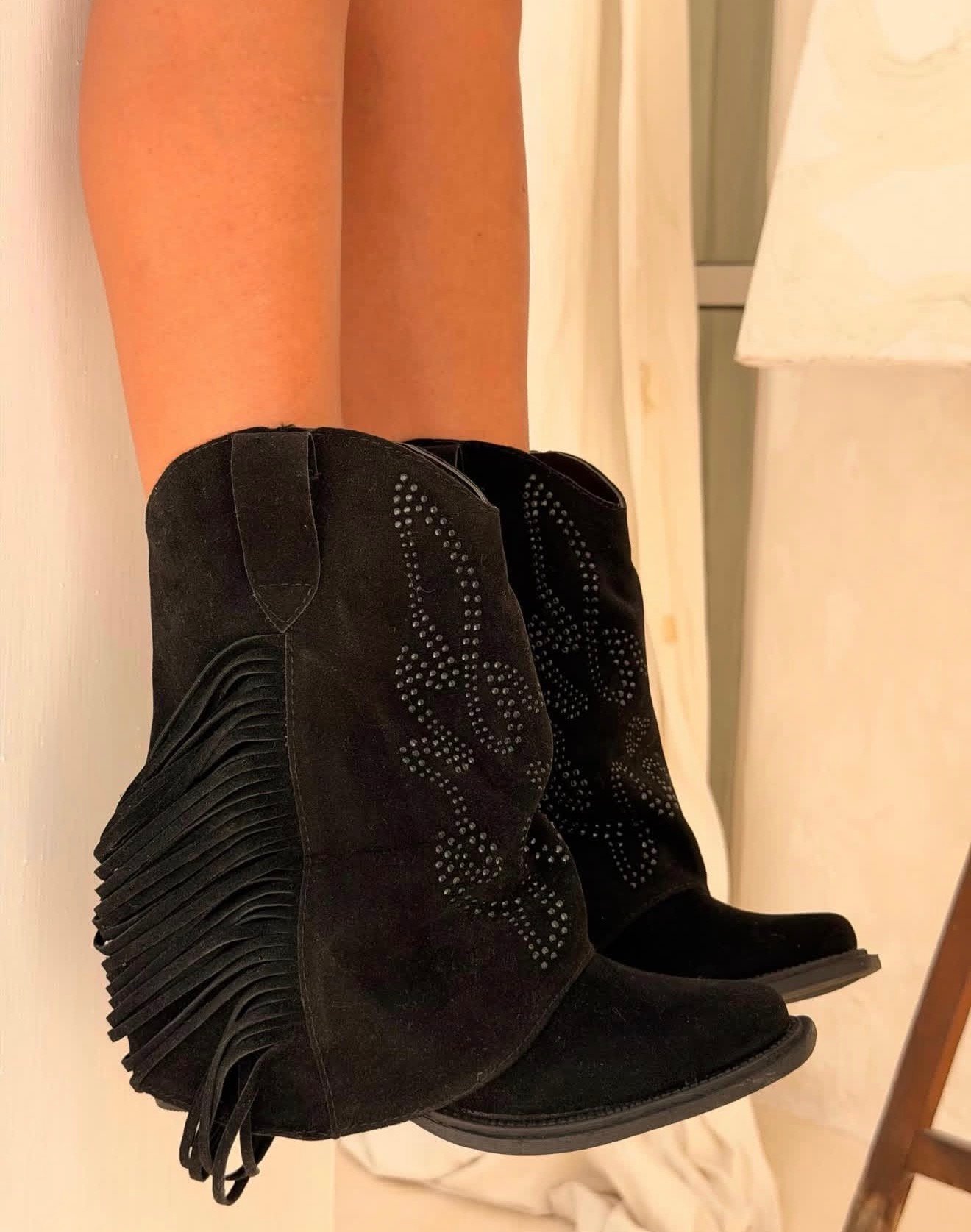 Las Tex VALKIRIA cuentan con flecos y strass a tono, que le dan un toque bohemio y glamoroso a la vez, haciendo que cada paso sea una declaración de moda.