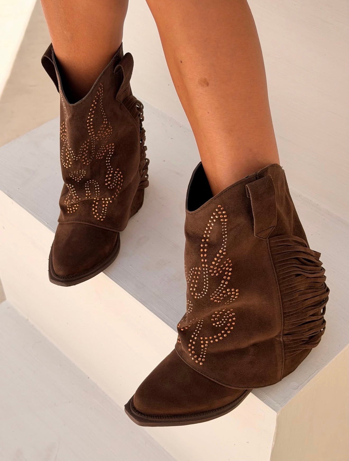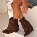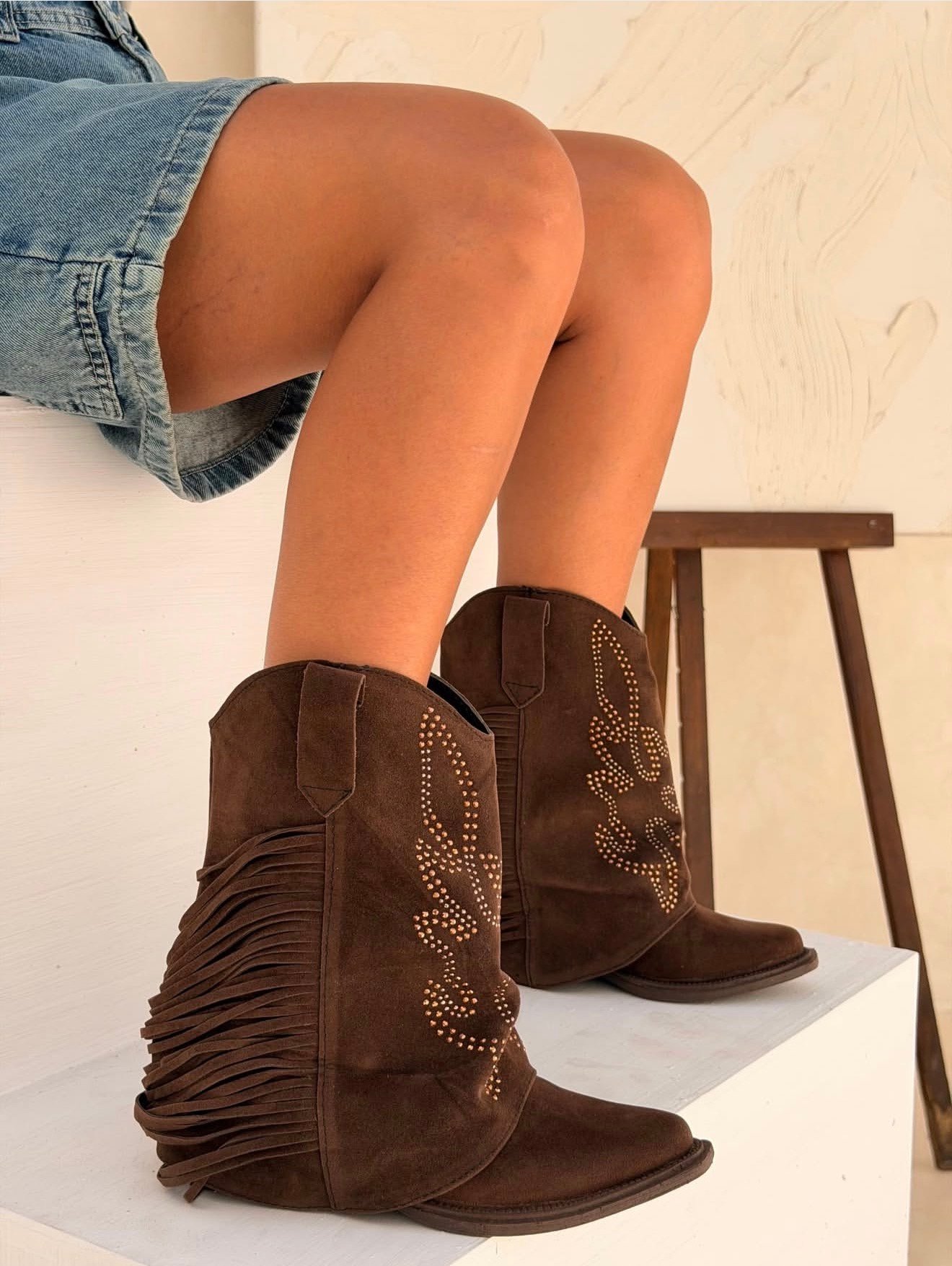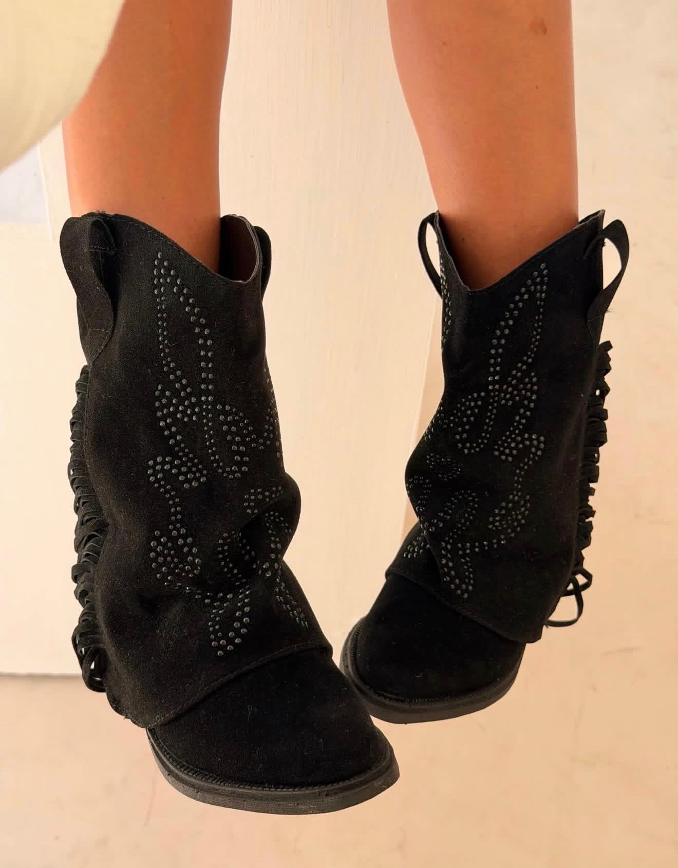 Las Tex VALKIRIA cuentan con flecos y strass a tono, que le dan un toque bohemio y glamoroso a la vez, haciendo que cada paso sea una declaración de moda.
